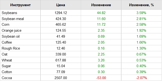 Импорт соевых бобов из США в Китай в ноябре более чем удвоился по сравнению с предыдущим годом, как показали таможенные данные, поскольку в страну прибыли грузы, заказанные после подписания первой фазы торговой сделки между США и Китаем. Крупнейший в мире покупатель сои импортировал 6,04 миллиона тонн из США в ноябре, что на 136% больше, чем 2,56 миллиона тонн годом ранее. Ноябрьские поставки также выросли по сравнению с 3,4 млн. тонн в октябре. За первые 11 месяцев этого года Китай импортировал 20,05 миллиона тонн сои из США, что на 45% больше, чем 13,85 миллиона тонн в предыдущем году. Кроме того, в ноябре было закуплено 2,74 миллиона тонн бразильской сои, что на 29% меньше, чем 3,86 миллиона тонн годом ранее.