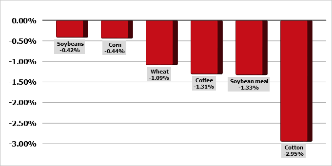 Ночное движение кукурузы привело к тому, что фьючерсы на кукурузу в обоих направлениях оказались в более узком диапазоне 8 центов (-2/+6), при этом рынок в настоящее время незначительно падает до 2 центов в плюсе в преддверии данных по экспортным продажам. Вчера наблюдался дополнительный эффект роста цен на пшеницу, несмотря на низкий уровень производства этанола в соответствии с EIA. Цены на кукурузу в предыдущем месяце завершили сессию в середине недели ростом на 3-4 цента. Опрошенные аналитики ожидают, что USDA покажет от 250 до 800 тысяч тонн кукурузы, проданной на экспорт за неделю, закончившуюся 22 сентября.