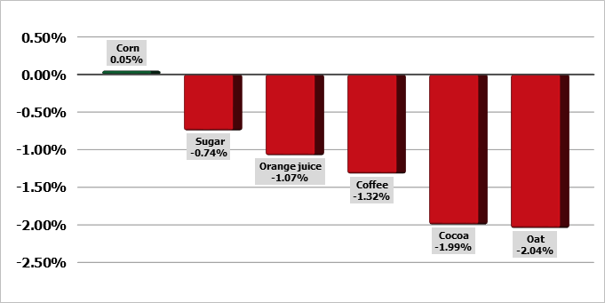 Декабрьский контракт на кукурузу утром в среду колебался в диапазоне 26 центов, от -10 до +16 центов, но в конечном итоге закрылся на уровне 5 долларов с убытком в 6 3/4 цента. Остальные контракты подешевели от 2 до 8 3/4 цента в среду. Еженедельное производство этанола по данным EIA в среднем составляло 1,067 млн баррелей в день в течение недели, закончившейся 28 июля. Это на 27 тыс. баррелей в сутки меньше, чем на прошлой неделе, но прирост 10-ю неделю подряд составляет +1 млн баррелей в сутки. Запасы этанола сократились на 368 тыс. баррелей до 22,86 млн. Трейдеры ожидают от 150 до 500 тысяч тонн заказов на кукурузу старого урожая за неделю, закончившуюся 27 июля. Заказы на экспорт нового урожая оцениваются в диапазоне от 200 до 700 тыс. тонн, согласно сегодняшнему утреннему отчету.
