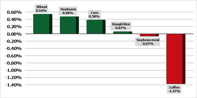 Цены на пшеницу в четверг на рынке SRW были выше на 9,5–10 центов. Фьючерсы на пшеницу KC стоили от 12 3/4 до 14 центов, а майский контракт на 56 3/4 центов сильнее. В еженедельном отчете USDA об экспортных продажах за неделю, закончившуюся 27 апреля, было продано 211 053 тонны. Это на 35% больше, чем на прошлой неделе, и на 78% больше, чем на той же неделе в прошлом году. Оценки трейдеров превысили 250 тыс. тонн перед отчетом. Мексика была главным покупателем на неделе. Еженедельные отгрузки составили 289 тыс. тонн, а общий объем за сезон — 16 483 млн тонн. Министерство сельского хозяйства США также сообщило о продажах нового урожая на уровне 280 тыс. тонн, что снова оказалось на верхнем уровне оценок.