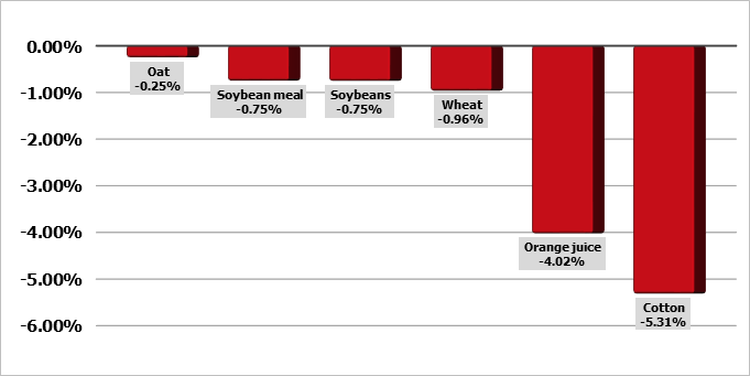 Урожаи пшеницы в 2022 и 2021 годах будут самыми низкими с 1,606 миллиарда бушелей в 2002 году. С 2012 по 2021 год урожай пшеницы составлял в среднем 1,987 миллиарда бушелей в год. Цены на соевые фьючерсы упали на 46 центов за бушель до 13,64 ¾ доллара. Производство яровой и твердой пшеницы в этом году составило 546 млн бушелей, что на 48% больше, чем в прошлом году. В августе Министерство сельского хозяйства США оценило урожай яровой и твердой пшеницы в сумме на уровне 586 миллионов бушелей, но немного снизило его в сводке по мелкому зерну, опубликованной в пятницу, что является последним взглядом на урожай пшеницы до января.