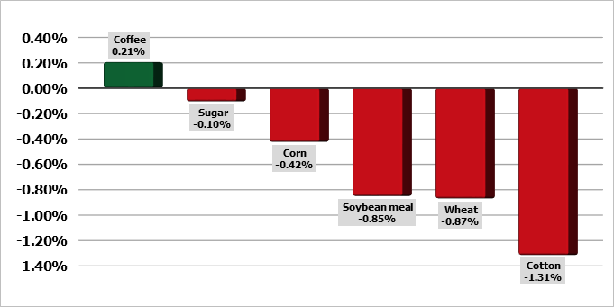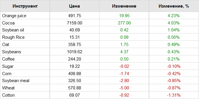 Цены на пшеницу снижались в начале торгов четверга. Фьючерсы закрыли сессию среды с повышением по всем направлениям. Фьючерсы на чикагскую SRW выросли еще на 13-14 центов в ближайшие дни. За ночь было произведено еще 220 поставок сентябрьской пшеницы CBT. Фьючерсы KC HRW выросли на 16-19 центов в первых месяцах. Яровая пшеница MPLS в полдень подорожала на 16-23 цента. Экспорт пшеницы в июле составил 1,959 млн тонн (71,98 млн бушелей). Это 4-месячный максимум и на 33,63% больше, чем в июне, а также на 12,6% больше, чем в июле прошлого года.