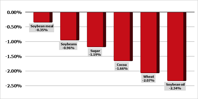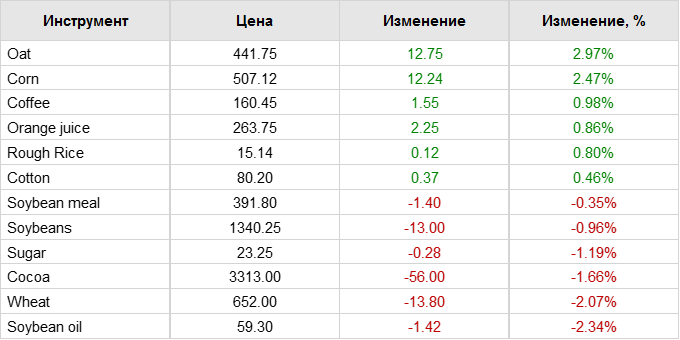 Фьючерсы на пшеницу в Чикаго снизились в четверг, поскольку рынок сделал передышку после сильного роста на предыдущей сессии, хотя снижение было ограничено медленными темпами сбора озимых в США и ухудшением условий для яровых культур. Соевые бобы выросли, в то время как кукуруза набрала больше позиций. Самый активный контракт на пшеницу на Чикагской товарной бирже (CBOT) Wv1 упал на 0,7% до 6,69-1/2 доллара за бушель по состоянию на 00:37 по Гринвичу. Соя Sv1 подешевела на 0,7% до $13,46-1/4 за бушель, а кукуруза Cv1 прибавила 0,3% до 4,95 за бушель. Пшеница выросла более чем на 5% в среду после того, как Министерство сельского хозяйства США (USDA) сообщило, что по состоянию на воскресенье было собрано всего 37% озимого урожая по сравнению с 52% в прошлом году. Агентство также неожиданно понизило рейтинг яровой пшеницы, так как дожди не улучшили условия.