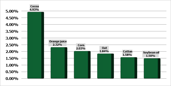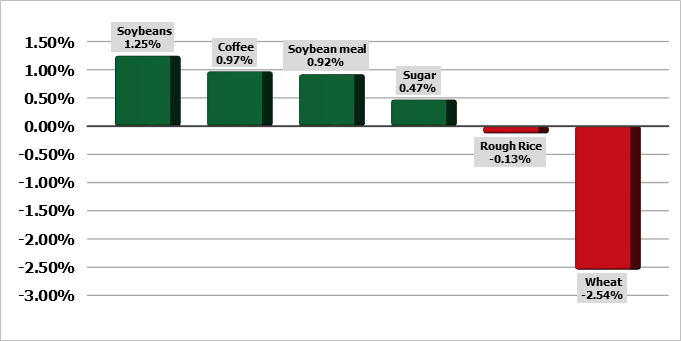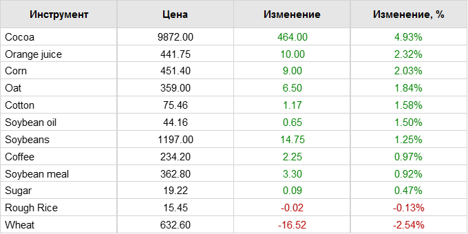 Чикагская пшеница практически не изменилась в среду после достижения двухнедельного минимума ранее в ходе сессии на фоне ослабления опасений по поводу ущерба, нанесенного погодными условиями российскому урожаю. Цены на сою выросли, поскольку потери урожая из-за наводнений в крупнейшем экспортере Бразилии поддержали рынок, в то время как цены на кукурузу снизились. Самый активный контракт на пшеницу на Чикагской торговой бирже (CBOT) Wv1 снизился на 0,1% до $6,57-1/2 за бушель в 11:35 по Гринвичу. В начале сессии он достиг $6,56-3/4, самого низкого уровня с 20 мая, и потерял более 8,5% с момента достижения 10-месячного максимума 28 мая. Соевые бобы Sv1 выросли на 0,25% до $11,82 за бушель.