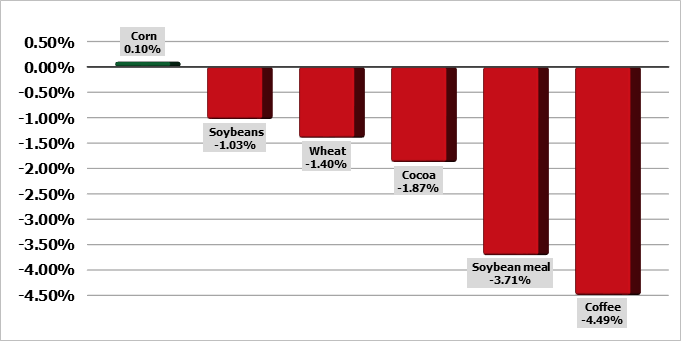 Сентябрьская мягкая красная озимая пшеница CBOT подешевела на 6-3/4 цента до 7,75-3/4 доллара за бушель.