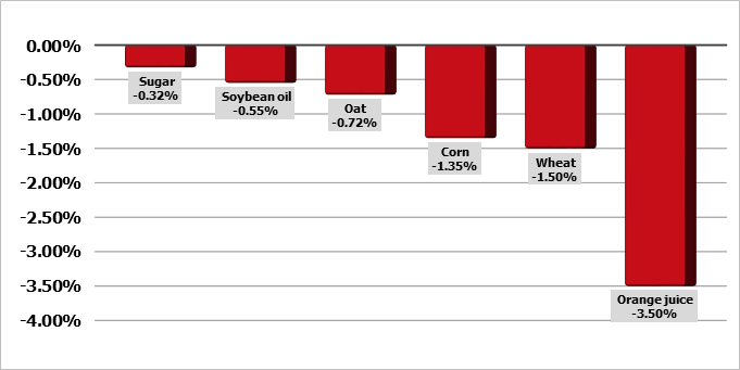 Ожидается, что Министерство сельского хозяйства США (USDA) оценит 67% урожая кукурузы в стране в хорошем или отличном состоянии в своем еженедельном отчете о ходе сбора урожая, что на 2 процентных пункта ниже, чем неделю назад, в соответствии со средней оценкой опроса 11 аналитиков в понедельник. Оценки кукурузы от «хорошо» до «отлично» варьировались от 65% до 69%. Посев кукурузы был завершен на 97% по сравнению с 92% на прошлой неделе. Соединенные Штаты занимают второе место в мире по экспорту кукурузы после Бразилии. По данным Министерства сельского хозяйства США, засушливые условия вызывают беспокойство: по состоянию на 30 мая 34% посевов кукурузы в США испытывали засуху.