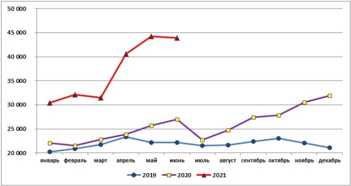 Текущие показатели на 0,9% уступают майским и на 63% превышают результаты марта прошлого года.