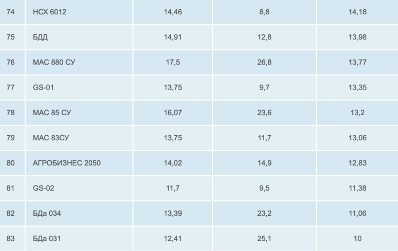 Лидером в этом году стал гибрид под технологию Clearfield НСХ 6343 с урожайностью 31,65 ц/га. Гибриды, которые каждый год у нас оказывались в первой десятке, также в первой десятке и остались.