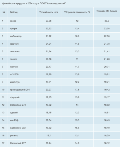 То же самое и по кукурузе. Не было лидеров, не было явных аутсайдеров. Урожайности на демоделянках колебалась от 17 ц/га до 24 ц/га.