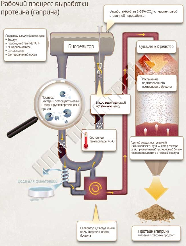 Между тем, научные разработки СССР в 80-х годах вышли на наиболее оптимальную технологию биосинтеза кормового белка на основе природного газа метана — это производство белка на базе использования метанотрофных бактерий.