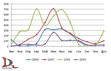 Динамика импорта комбайнов в Россию (2006-2009 гг., шт.):