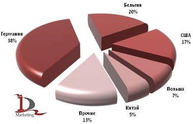 Основной страной-производителем импортируемых в Россию комбайнов является Германия. В данной стране было выпущено 3 318 ед. комбайнов, ввезенных в РФ.