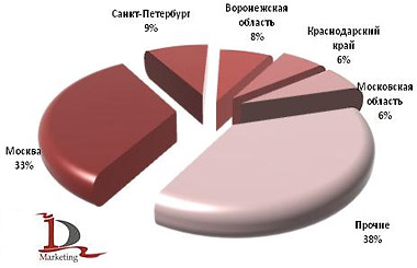 Лидером по получению импортной техники является Москва, на долю столицы приходится 2 912 ед. комбайнов, ввезенных за 2006-2009 гг. Основная доля приходится на официальные представительства ведущих предприятий производителей комбайнов, в частности, John Deere, Claas.