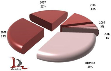 В целом, на пятерку лидеров приходится 83% от общего количества импортированных комбайнов за 2006-2009 гг.