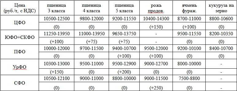 На текущей неделе отмечалось незначительное изменение ценовых показателей на зерновом рынке. Так, в ЦФО продовольственная рожь подорожала на 150 руб./т, фуражный ячмень – на 100 руб./т, а стоимость остальных зерновых культур осталась на уровне прошлой недели.