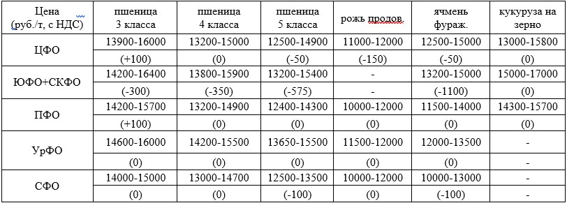 В азиатской части страны наблюдались изменения ценовых котировок лишь в Сибири, где пшеница 5-го класса и фуражный ячмень подешевели в среднем на 100 руб./т.