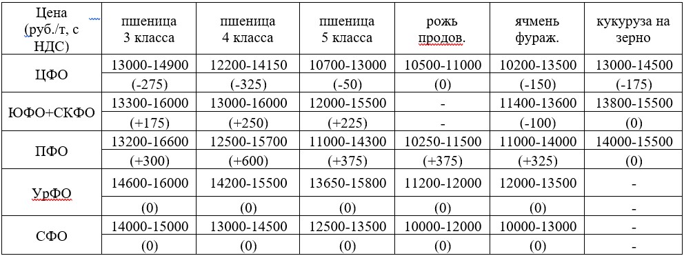 На текущей неделе в европейской части страны наблюдалось разнонаправленное движение цен на зерновые культуры. При этом в азиатской части стоимостные показатели стабилизировались и находились на уровне прошлой недели.
