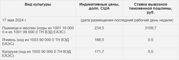 Ставки вывозных таможенных пошлин из РФ на зерно с 22-го мая 2024 года