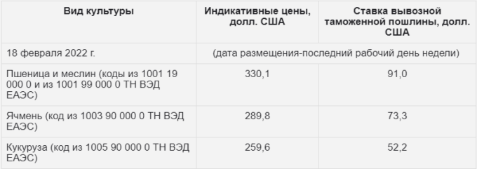 Ставки вывозных таможенных пошлин из РФ на зерно с 23-го февраля 2022 года