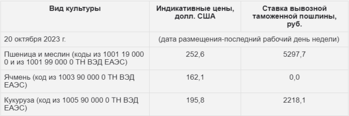 Ставки вывозных таможенных пошлин из РФ на зерно с 25-го октября 2023 года
