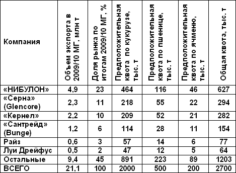 Исторический принцип распределения квот интересен крупным зернотрейдерам, таким как «НИБУЛОН», «Кернел-Трейд», «Серна» и «Сантрейд». Безусловно, это не позволит им много заработать, но, во всяком случае, пока будет действовать запрет, они не исчезнут с рынка и будут находиться в поле зрения зарубежных партнеров, что после отмены квот позволит им укрепить свои позиции.