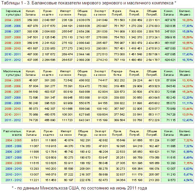Жевать словарный запас не вижу смысла, если переходящие балансы FAS USDA говорят “ещё не вечер” и как видите, на сезон 2011 – 2012 года американцы вывели балансы зерновых, масличных и растительных масел на исторический минимум. Вследствие этого, два комплекса в преддверии предстоящего сезона намекают на дальнейший повышательный тренд, который обусловлен снижением балансового индекса по отношению к предыдущему сезону.