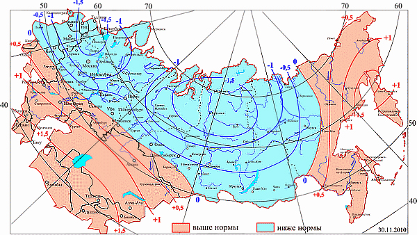 Прогноз особенностей агрометеорологических условий на территории России в декабре-2010