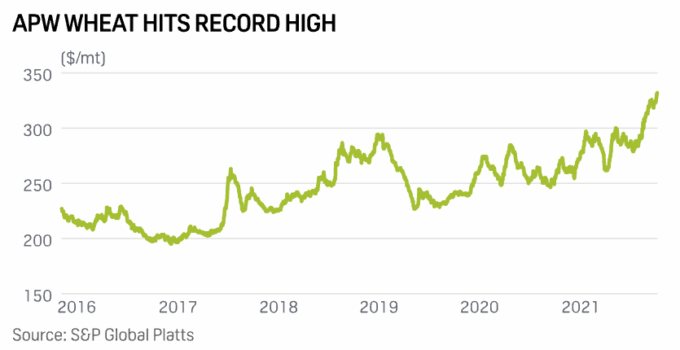 Многообещающие перспективы экспорта совпали с рекордно высокими ценами на пшеницу, при этом индекс австралийской пшеницы Premium White достиг исторического максимума в $ 332 за тонну на условиях FOB Kwinana 5 октября.