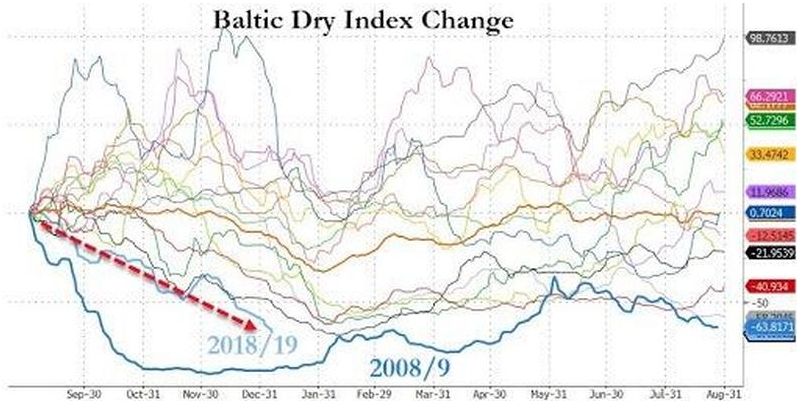 Baltic Dry Index называют барометром здоровья глобализации. Он отражает стоимость перевозки сухих грузов по океану — а это зерно, уголь, руда, бокситы, цемент и т.д. Показатель не идеальный, так как отражает не объемы, а ожидания и отклонения от ожиданий, подвержен спекулятивным атакам и колебаниям, но в целом полезный.