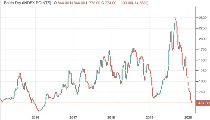 С началом 2020 года многие люди, следящие за ситуацией на мировых биржах, обратили внимание на странное падение Baltic Dry Index, который всё падал и падал, пока не упал на 80%.