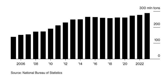 Согласно отчетам правительства, в прошлом году урожай достиг рекордных 289 млн тонн. По оценкам трейдеров и аналитиков, опрошенных Bloomberg, производство в 2024 году может снизиться на 5-20 млн тонн. В худшем случае это означает падение производства примерно на 7%, что станет самым большим снижением с 2000 года, когда производство упало на 17%.