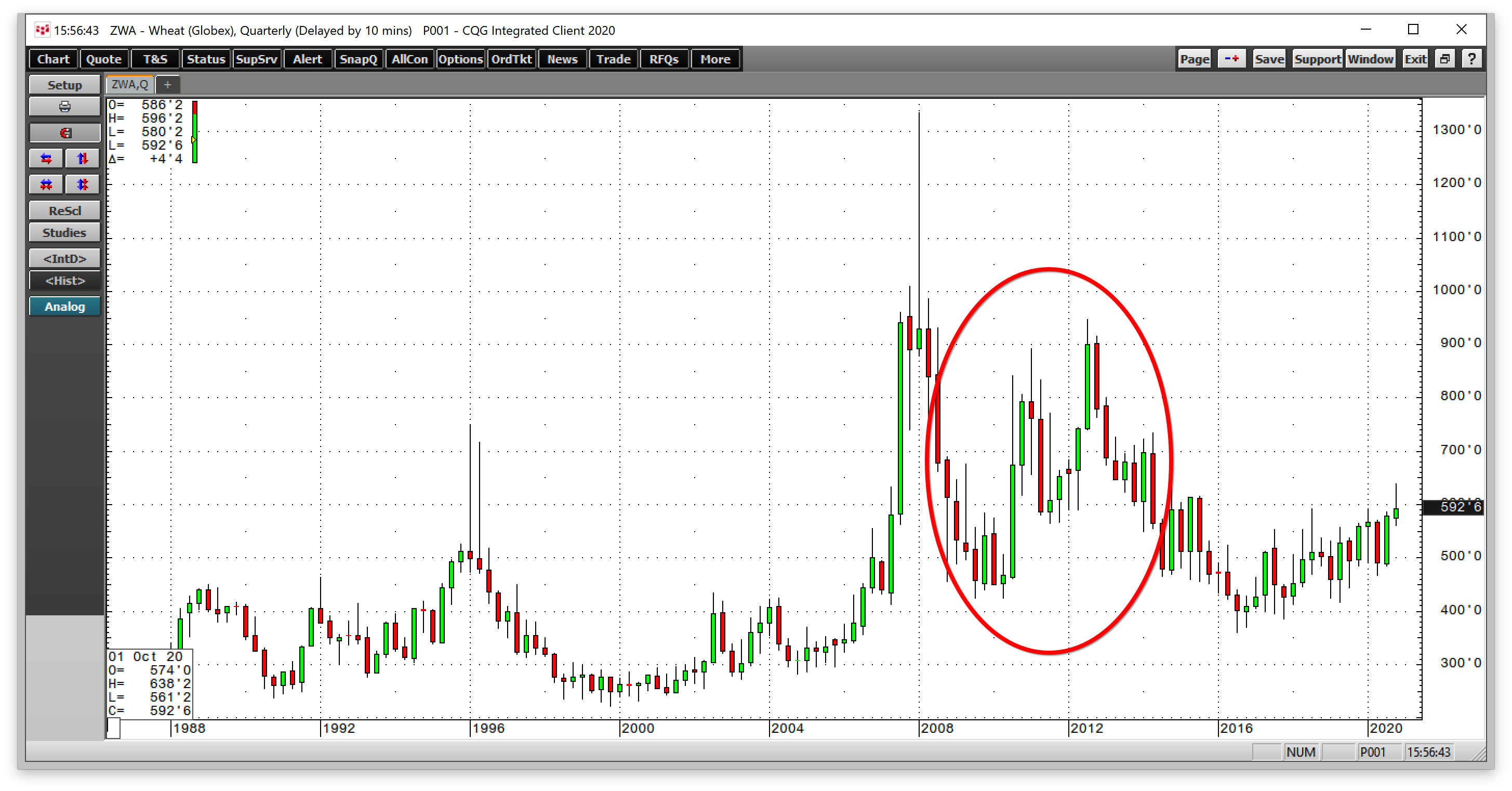 Пиком рынка пшеницы остается отметка 2008 года в $13,34 за бушель. Тогда дороговизна пшеницы сыграла свою роль в «Арабской весне», спровоцировав радикальные политические изменения в Северной Африке и на Ближнем Востоке.