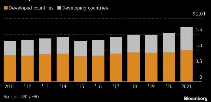 Страны мира заплатят за импорт продовольствия рекордные $1,72 трлн в этом году — ООН