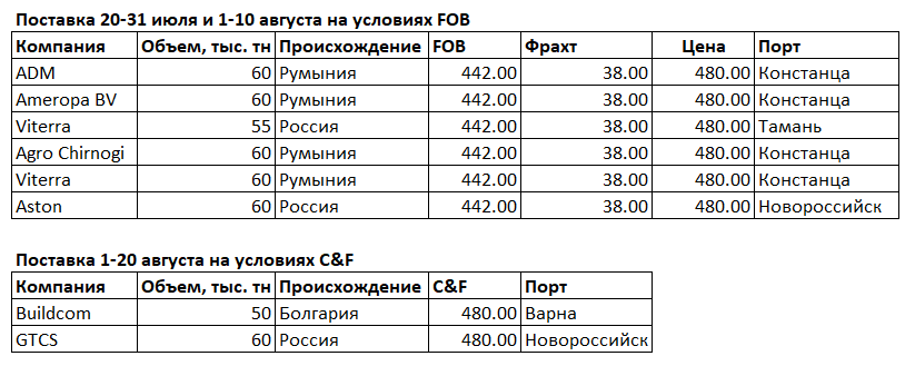 Обращает на себя внимание, что в результатах тендера нет разброса по ценам. Все кто были согласны продать зерно по 480 долларов за тонну с учетом фрахта получили такую возможность. В целом данный тендер это успех румынской пшеницы, поставки из России также обращают на себя внимание.