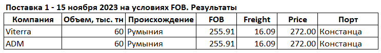 Тендер GASC. Поставка 1 — 15 ноября 2023. Результаты