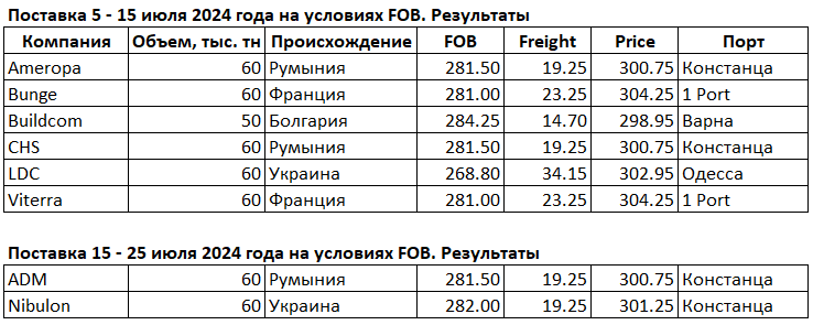 Тендер GASC. Поставка 5-15 / 15-25 июля 2024 года. Результаты