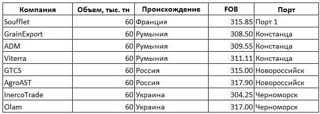 На данный момент поступили заявки от французских, румынских, украинских и российских экспортеров. Все предложения выше 300 $/тн. Напомним, что на предыдущем тендере, проходившем 18 августа GASC закупила 180,000 тонн мукомольной пшеницы румынского и украинского происхождения.