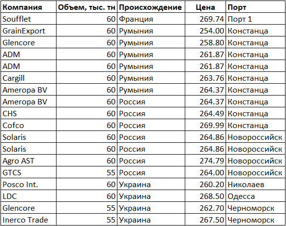 Среди стран, разместивших заявки на участие, были компании из России. Однако, самое выгодное предложение российской компании Solaris оказалось выше самого низкого варианта, предложенного компанией Grain Export на 10$.