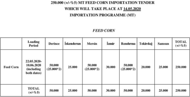 Зерновое агентство Турции (ТМО) анонсировало тендер по закупке 250 000 тонн фуражной кукурузы.