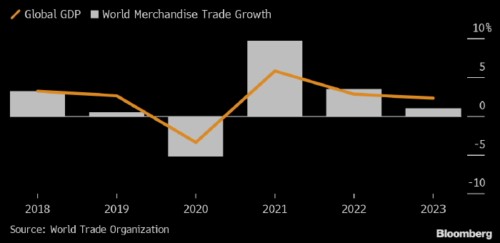 ВТО ожидает, что в 2023 году темпы роста мировой торговли замедлятся до 1% по сравнению с предыдущим прогнозом в 3,4%.