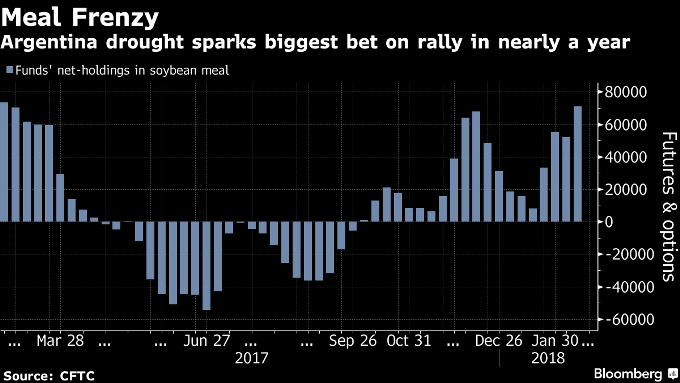 Засуха уже привела к тому, что самые активные фьючерсы на соевый шрот выросли на 19 процентов в 2018 году. Это самый большой прирост среди 22 сырьевых материалов, отслеживаемых товарным индексом Bloomberg.