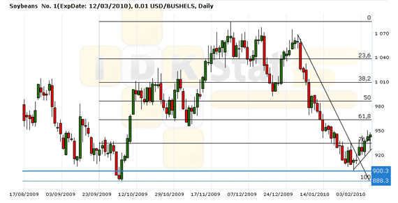 В пятницу мартовский соевый контракт в Чикаго подорожал на 2 цента, до 945.00 центов за бушель, продолжая повышаться над двадцатидневной скользящей средней, 935.25 ц/б. Закрытие вверху дневного торгового диапазона настраивает на более сильное открытие во вторник. Стохастический индикатор и RSI позитивны, указывая на то, что рынок, возможно, продолжит повышаться. Если Март продолжит дорожать, то следующей целью для «быков» станет 970.25 ц/б, уровень тридцативосьмипроцентной коррекции декабрьско-февральского ценового снижения. Закрытие ниже десятидневной скользящей средней, 925.00 ц/б, убавит пыл «быков». Ближайшее сопротивление – 950.50 ц/б , следующее сопротивление – 970.25 ц/б. Ближайшая поддержка – уровень десятидневной скользящей средней – 925.00 ц/б , следующая поддержка – 900.00 ц/б . Сегодня Еврокомиссия приняла решение о дополнительном импорте 10 тыс. тонн сахара. Поставщиком сырья станет Индия, несмотря на непростую ситуацию на собственном рынке – индийское правительство в условиях глобального дефицита борется с ценовым ростом на сладкий углевод. Генеральное управление международной торговли Индии (DGFT) постановило поставить в 2009/10 МГ 10 тыс. тонн сахара через государственную сахароперерабатывающую компанию Indian Sugar Exim Corporation.