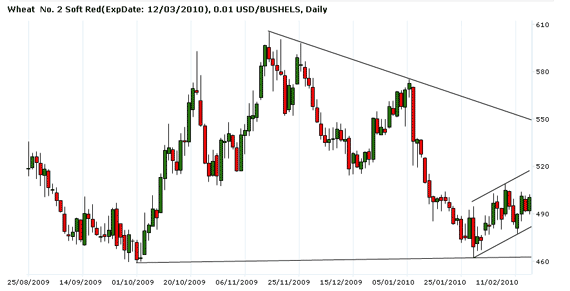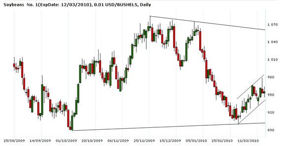 В среду мартовская пшеница подорожала на 8.50 цента до 500.25 центов за бушель. Закрытие в верху дневного торгового диапазона не предполагает снижения котировок на открытии в четверг. Стохастический индикатор и RSI развернулся в сторону повышения, указывая на возможное укрепление рынка в ближайшей перспективе. Если Март продолжит повышаться, то следующей целью для «быков» станет уровень 514.25 ц/б. Закрытия ниже 480 ц/б могут вызвать дальнейшее ослабление рынка до 466.50 ц/б. Ближайшее сопротивление — 509.00 ц/б, следующее сопротивление – 514.25 ц/б . Ближайшая поддержка – 483.00 ц/б , следующая поддержка – 480.00 ц/б. Представители мукомольной отрасли Бангладеш ведут переговоры с производителями зерна Причерноморского региона относительно закупки 300 тыс. тонн пшеницы. Поставка зерна намечена на апрель-июнь. На международной зерновой конференции в Сингапуре один из трейдеров из Бангладеш отметил, что указанный объем закупок является ориентировочным, а участники будущей экспортно-импортной операции пока только ведут переговоры. Крупнейший импортер зерновых на Ближнем Востоке, Ирак, в 2010 г. планирует закупить 3 млн тонн пшеницы на зарубежных рынках и чуть более 1 млн тонн риса. Объем пшеницы аналогичен закупкам прошлого года, а импорт риса незначительно сократился за год. Об этом сообщает государственная зерновая биржа в своем обновленном информационном отчете. Слухи о том, что Индия может возобновить экспорт пшеницы, могут так и остаться слухами, считают некоторые аналитики. И это несмотря на новый рекордный урожай зерновой. По самым предварительным оценкам, он позволит Индии сформировать продовольственный фонд из 40 млн тонн пшеницы, что эквивалентно двум годовым урожаям культуры в Австралии. Эксперты указывают на неконкурентоспособность индийской пшеницы по ценовому критерию. Даже если экспорт будет возобновлен, вряд ли зерно производства Индии найдет своего покупателя. В настоящее время на внутреннем рынке страны тонна пшеница продается по цене 11 тыс. рупий, что эквивалентно $237. На базисе FOB зерно теоретически будет отпускаться по цене $300 за тонну. Фермеры Австралии уже приступили к севу озимой пшеницы. В Южном полушарии на континент неумолимо надвигается зима. Агрометеорологи уже сделали прогнозы на период развития посевов, и они не самые утешительные. По их оценкам, в следующие три месяца крупнейший по производству пшеницы регион, Западная Австралия, получит недостаточное количество осадков. Китай является крупнейшим в мире производителем зерновых. Кроме того, страна уверенно занимает первое место по потреблению кукурузы в качестве сырья для кормов. В Северной Америке уже практикуется коммерческое производство генетически модифицированных сортов культуры. Эксперты считают, что Китаю потребуется не менее трех лет, чтобы запустить собственную коммерческую линию по производству трансгенной кукурузы.