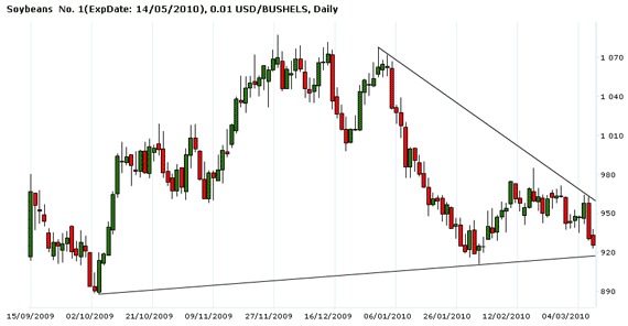 Стоимость сои по майскому контракту практически не менялась в ходе торговой сессии. Цена контракта составила 925.50 центов за бушель, в течение дня колеблясь между 923.00 и 938.00 цента за бушель.