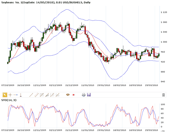 В среду майский соевый контракт в Чикаго повысился в цене на 8 центов, закрывшись на отметке 952.50 центов за бушель, выше двадцатидневной скользящей средней 950.75 ц/б, что уменьшает негативное впечатление от рынка. Закрытие в верхней части дневного торгового диапазона настраивает на более сильное открытие торгов в четверг. Стохастический индикатор и RSI нейтрально-негативны, указывая на возможное ослабление рынка в ближайшей перспективе. Май должен закрыться выше 985.00 ц/б или ниже 911.00 ц/б, чтобы подтвердить прорыв из двухмесячного бокового торгового диапазона. Ближайшее сопротивление – 957.00 ц/б, следующее сопротивление – 976.50 ц/б. Ближайшая поддержка – 941.75 ц/б, следующая поддержка – 921.75 ц/б.