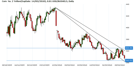 Corn No. 2 Yellow(ExpDate: 14/05/2010), 0.01 USD/BUSHELS, Daily