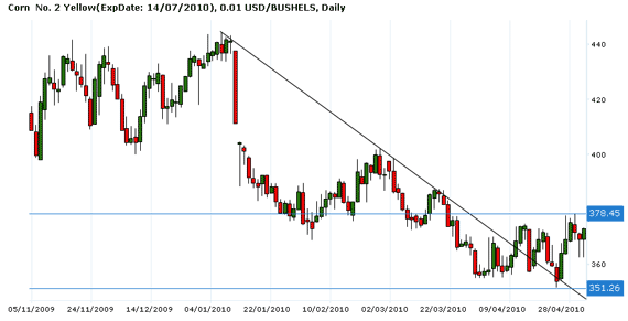 Corn No. 2 Yellow(ExpDate: 14/07/2010), 0.01 USD/BUSHELS, Daily