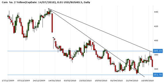 Corn No. 2 Yellow(ExpDate: 14/07/2010), 0.01 USD/BUSHELS, Daily