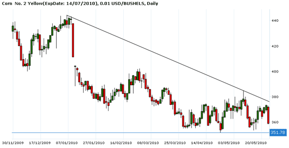 Corn No. 2 Yellow(ExpDate: 14/07/2010), 0.01 USD/BUSHELS, Daily
