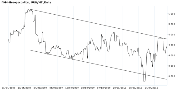 В Краснодарском крае уже как 2 недели стоят пустые элеваторы. Зерно можно найти у колхозников в небольшом количестве. В области переработчики покупают пшеницу 3 класса по 4800 руб./т у себя на складе. Практически по такой же цене пшеница 4 класса идет на экспорт. В порты зерно доставляют предпочтительно автотранспортом, но в настоящее время большие партии выгодно возить ж/д транспортом. Подсолнечник в крае покупают по 11500-12000 руб./т.